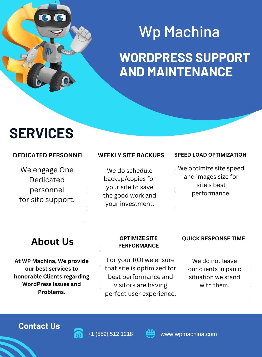 At WP Machina, We provide our best services to honorable Clients regarding WordPress issues and Problems, We love to deal With all type of internet based systems but we are at our peak Performance while working with WordPress.
